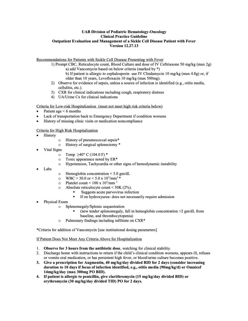 Disclaimer: These clinical pathways are intended to be a guide specifically for residents, fellows, CRNPs, and physicians (“practitioners”) at Children’s of Alabama (“COA”). These clinical pathways may be adapted for each patient depending on clinical scenarios based on the practitioner’s judgment, consideration of unique circumstances, needs of the patient and their respective family, and availability of resources of where the patient is located. These clinical pathways are not to be construed as medical advice or treatment. COA does not represent or warrant that the clinical pathways are in every respect accurate or complete, or that one of more of them apply to a particular patient or medical condition. COA is not responsible for any errors or omissions in the clinical pathways, or for any outcomes a patient might experience where a clinician consulted one or more such pathways in connection with providing care for that patient.